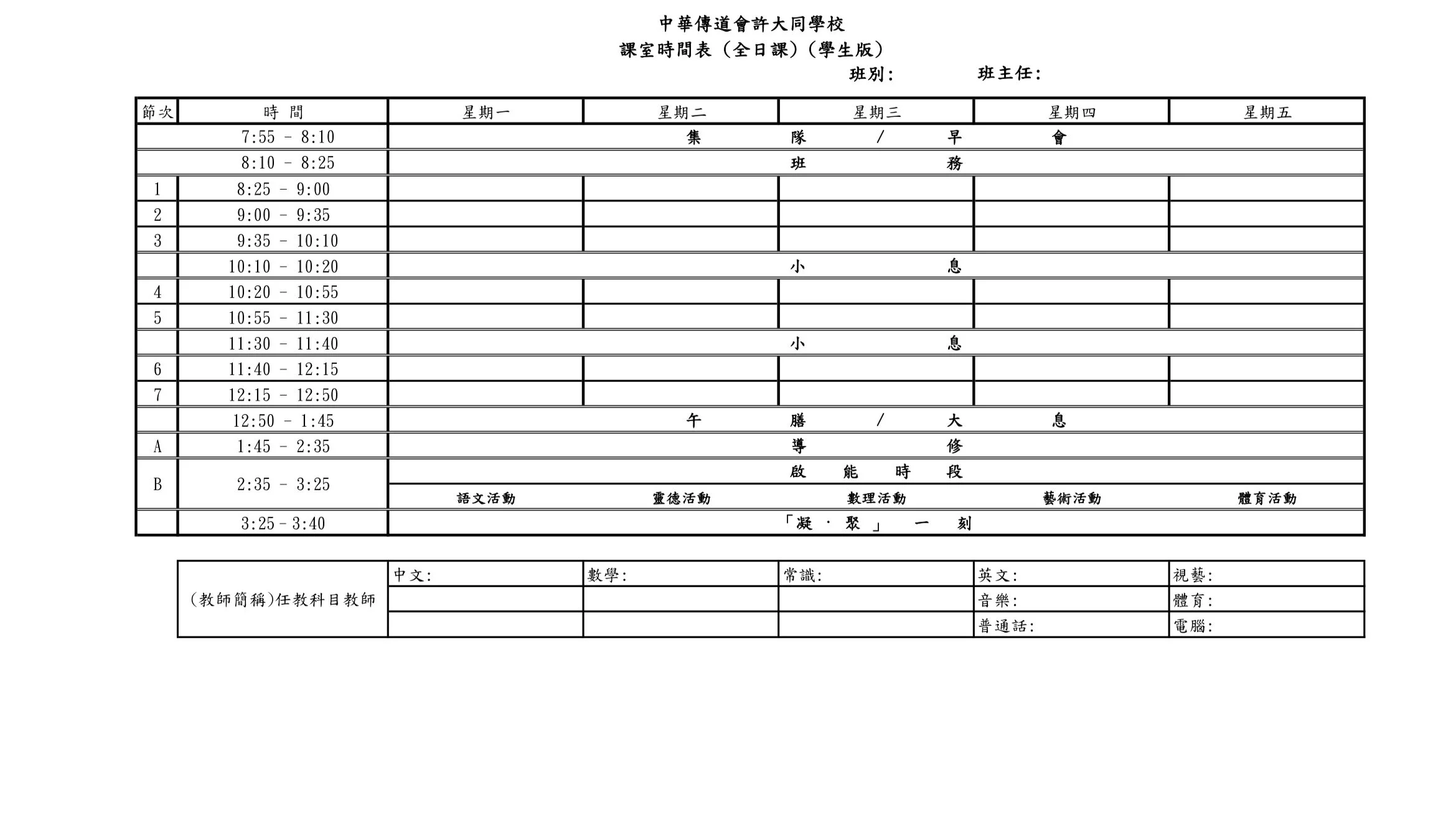 > 學校資訊 > 上課時間表